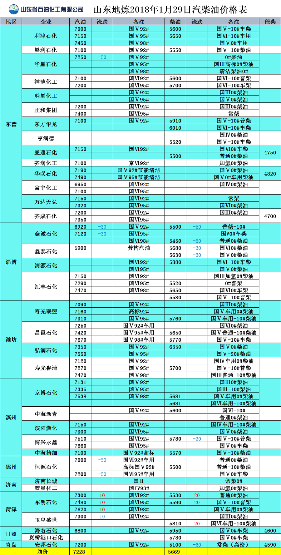 山東地?zé)?017年1月29日汽柴油價(jià)格表