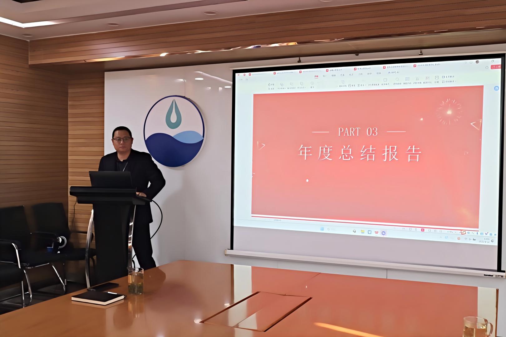 隨后,總經(jīng)理皇甫傳磊做年度總結(jié)報(bào)告。