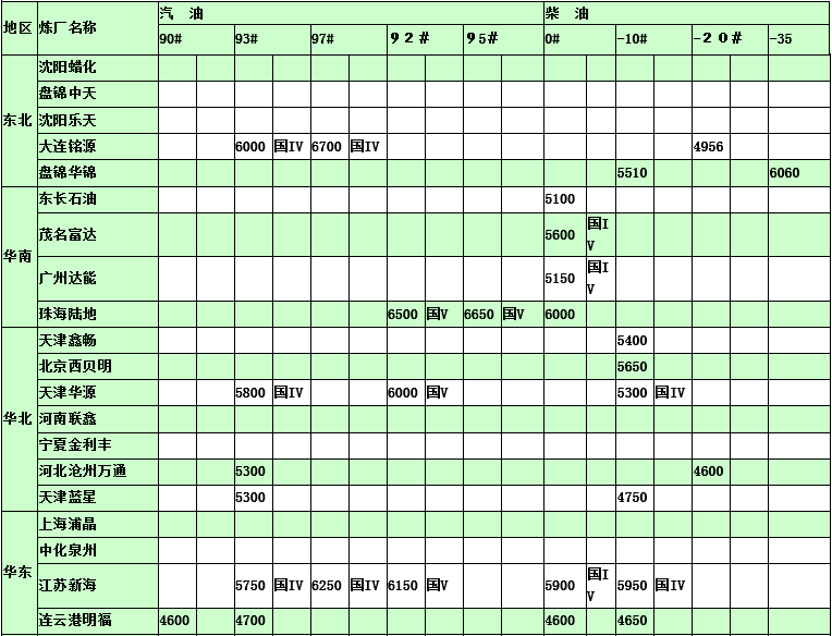 國內(nèi)煉廠2015年2月11日汽柴油價(jià)格表