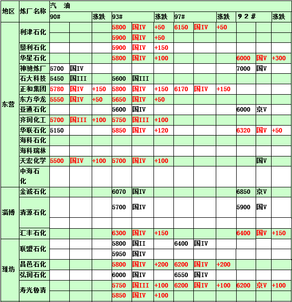 國(guó)內(nèi)煉廠2015年2月11日汽柴油價(jià)格表