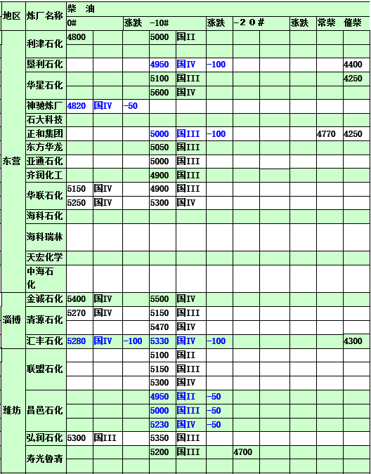 國內(nèi)煉廠2015年3月5日汽柴油價格表