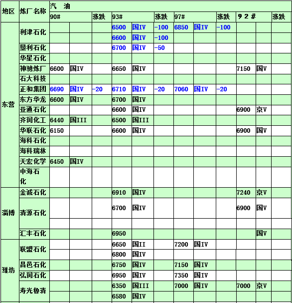 國內(nèi)煉廠2015年3月5日汽柴油價(jià)格表