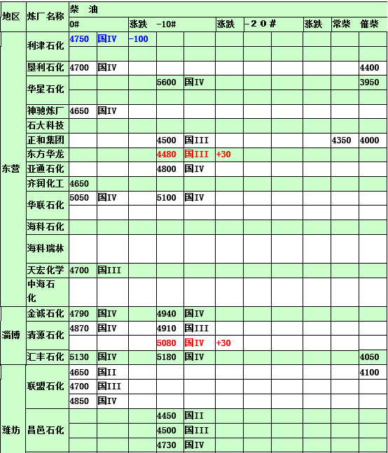 2015年3月19日山東地煉柴油價格