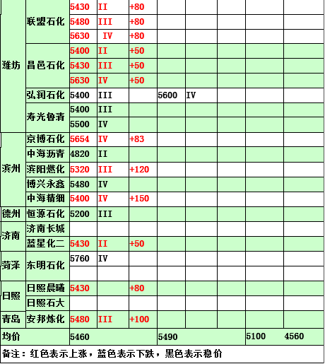 2015年5月8日山東地煉汽油價格
