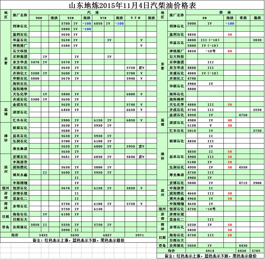 2015年11月4日山東地?zé)捚裼蛢r(jià)格表