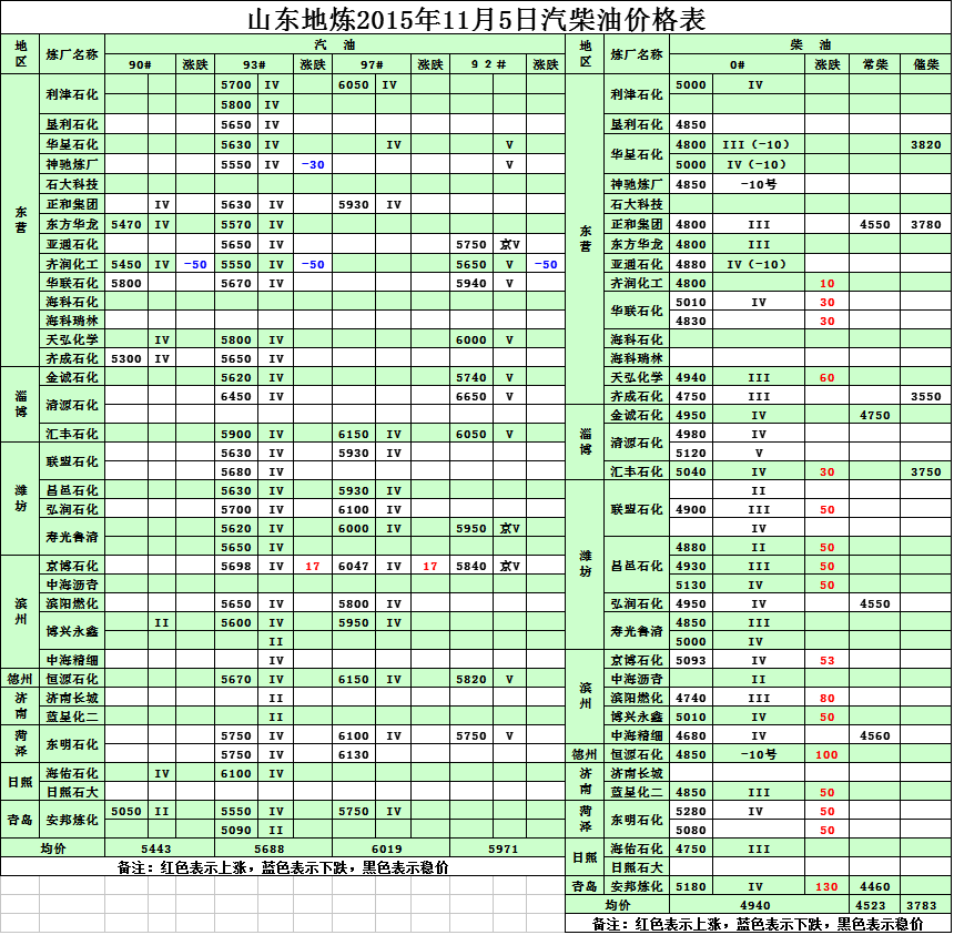 2015年11月5日山東地?zé)捚裼蛢r(jià)格表