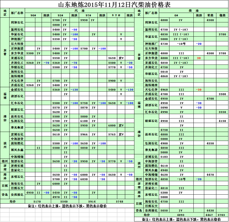 2015年11月12日山東地?zé)捚裼蛢r(jià)格表