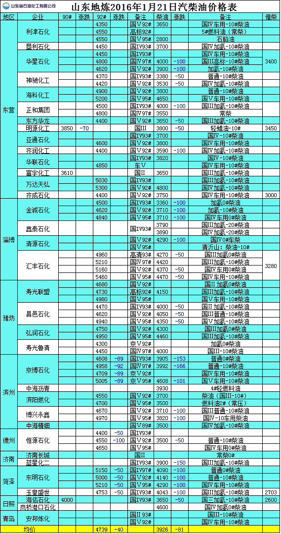 2016年1月21日山東地?zé)捚裼蛢r(jià)格表