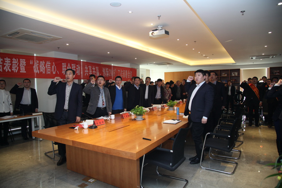 最后,公司全體人員進(jìn)行宣誓:愛(ài)崗敬業(yè),誠(chéng)實(shí)守信,戰(zhàn)略信心,務(wù)實(shí)拼搏,創(chuàng)新思維,團(tuán)結(jié)協(xié)作,開(kāi)拓進(jìn)取,聯(lián)合聯(lián)動(dòng),搭建平臺(tái),共享共贏,以客戶心為心,回報(bào)股東,奉獻(xiàn)社會(huì)!2016年,公司必將上下同欲,團(tuán)結(jié)一心,繼往開(kāi)來(lái),再創(chuàng)輝煌!