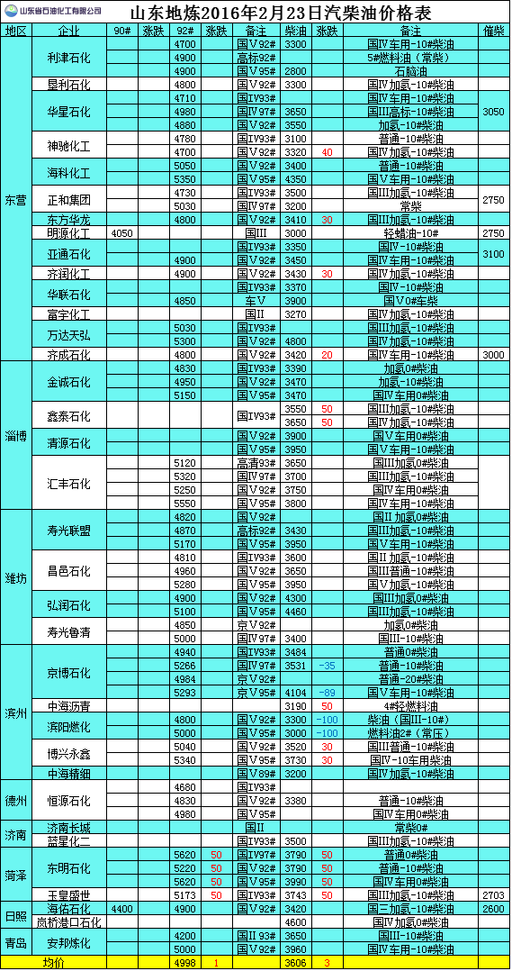 2016年2月23日山東地?zé)捚裼蛢r(jià)格表