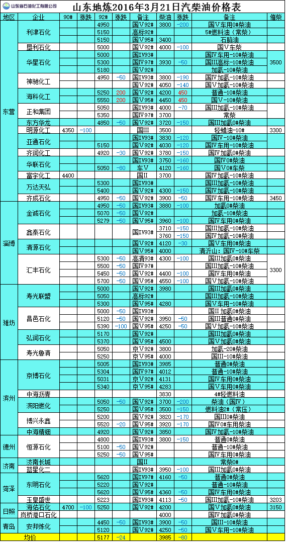 2016年3月21日山東地?zé)捚裼蛢r(jià)格表