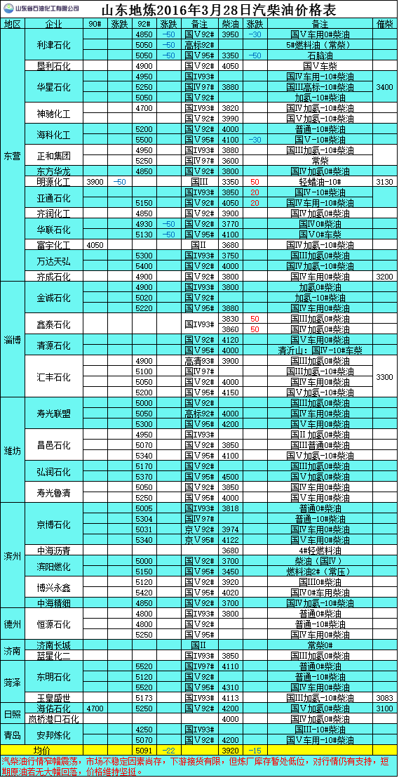 2016年3月28日山東地?zé)捚裼蛢r(jià)格表