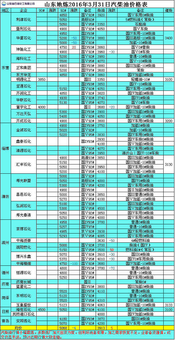 2016年3月31日山東地?zé)捚裼蛢r格表