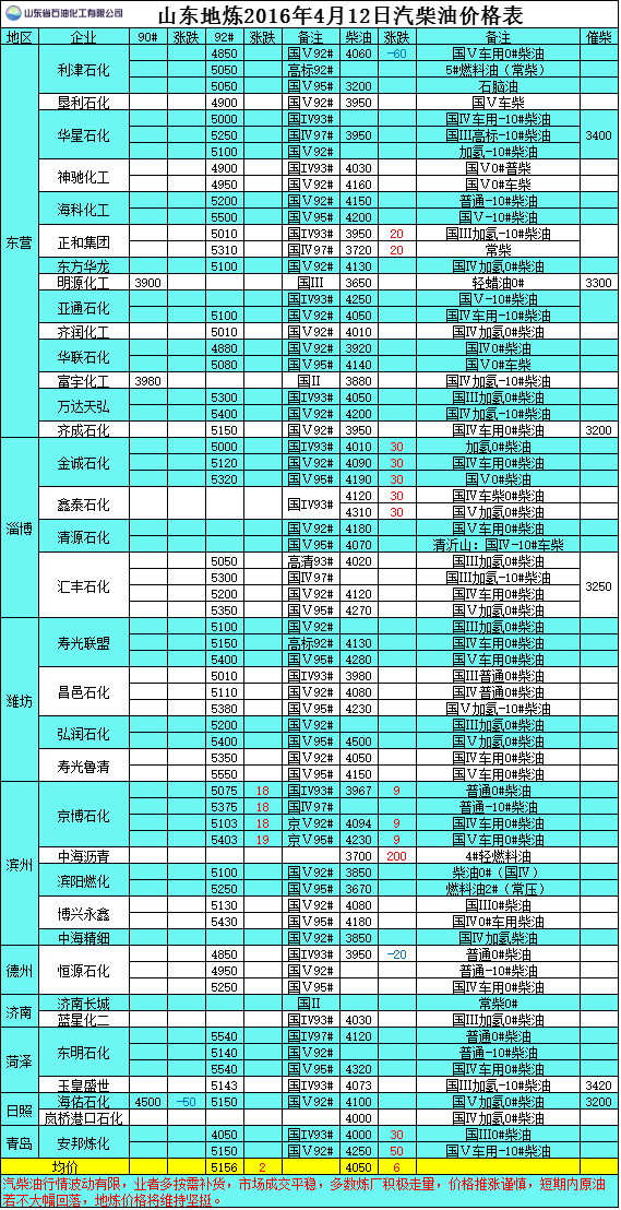 2016年4月12日山東地?zé)捚裼蛢r(jià)格表