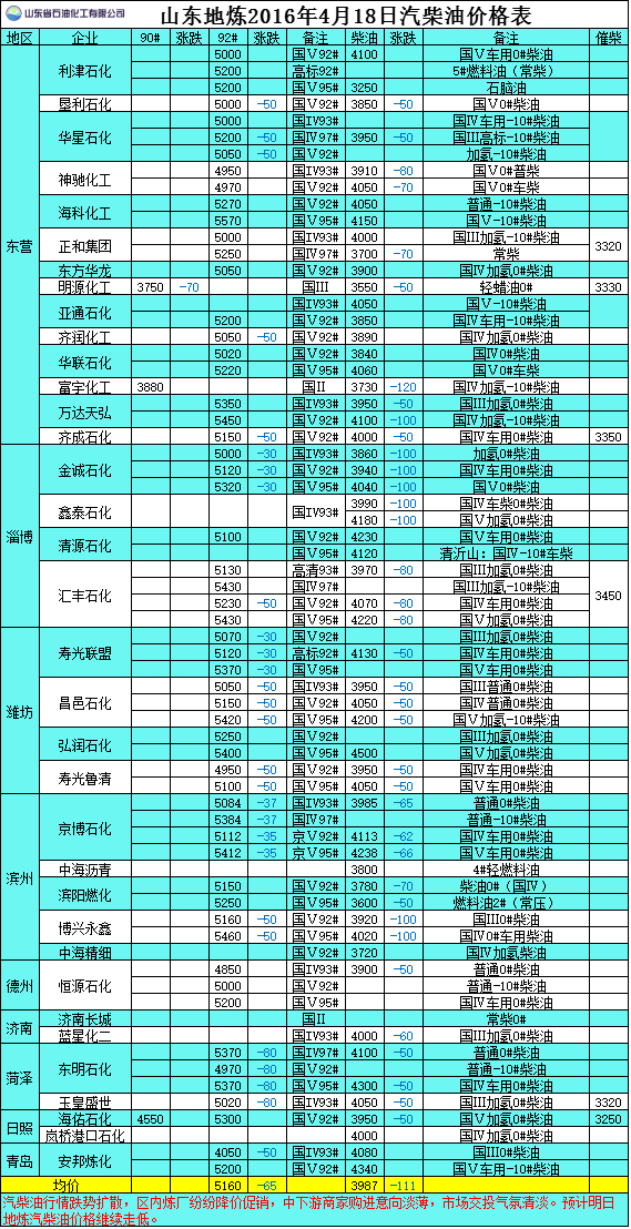 2016年4月18日山東地?zé)捚裼蛢r格表