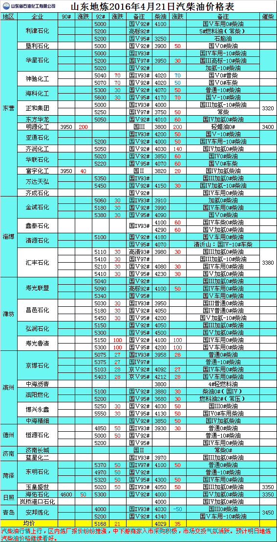 2016年4月21日山東地?zé)捚裼蛢r(jià)格表