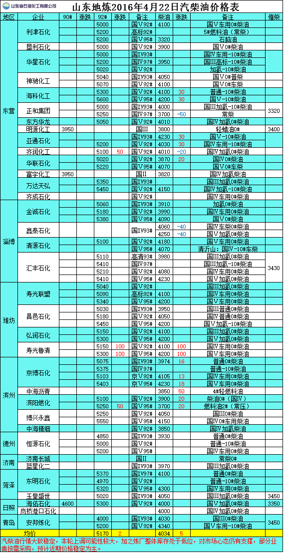 2016年4月22日山東地?zé)捚裼蛢r(jià)格表