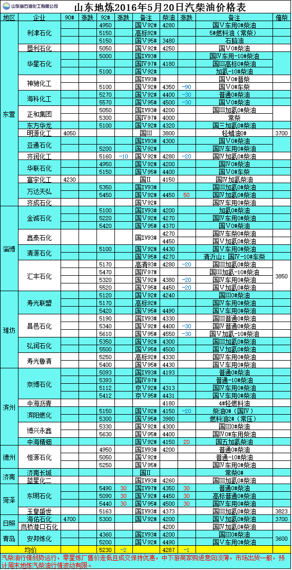 2016年5月20日山東地?zé)捚裼蛢r格表