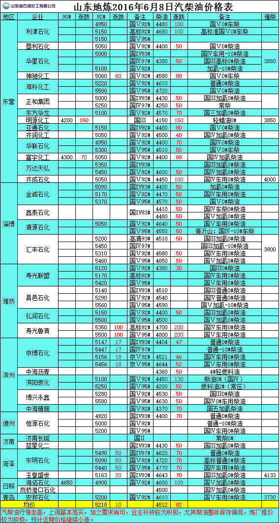 2016年6月8日山東地?zé)捚裼蛢r格表
