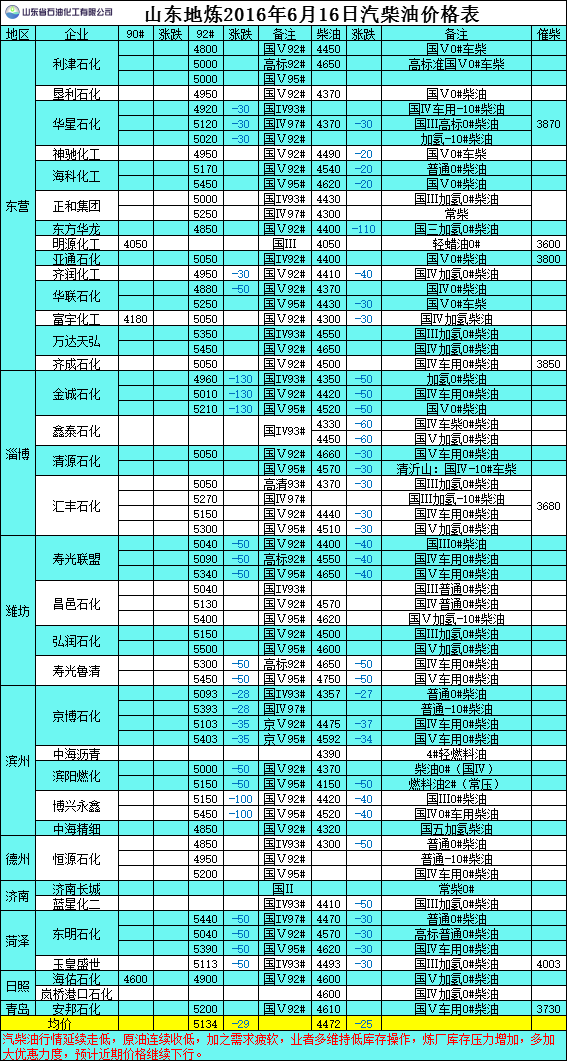 2016年6月16日山東地?zé)捚裼蛢r格表