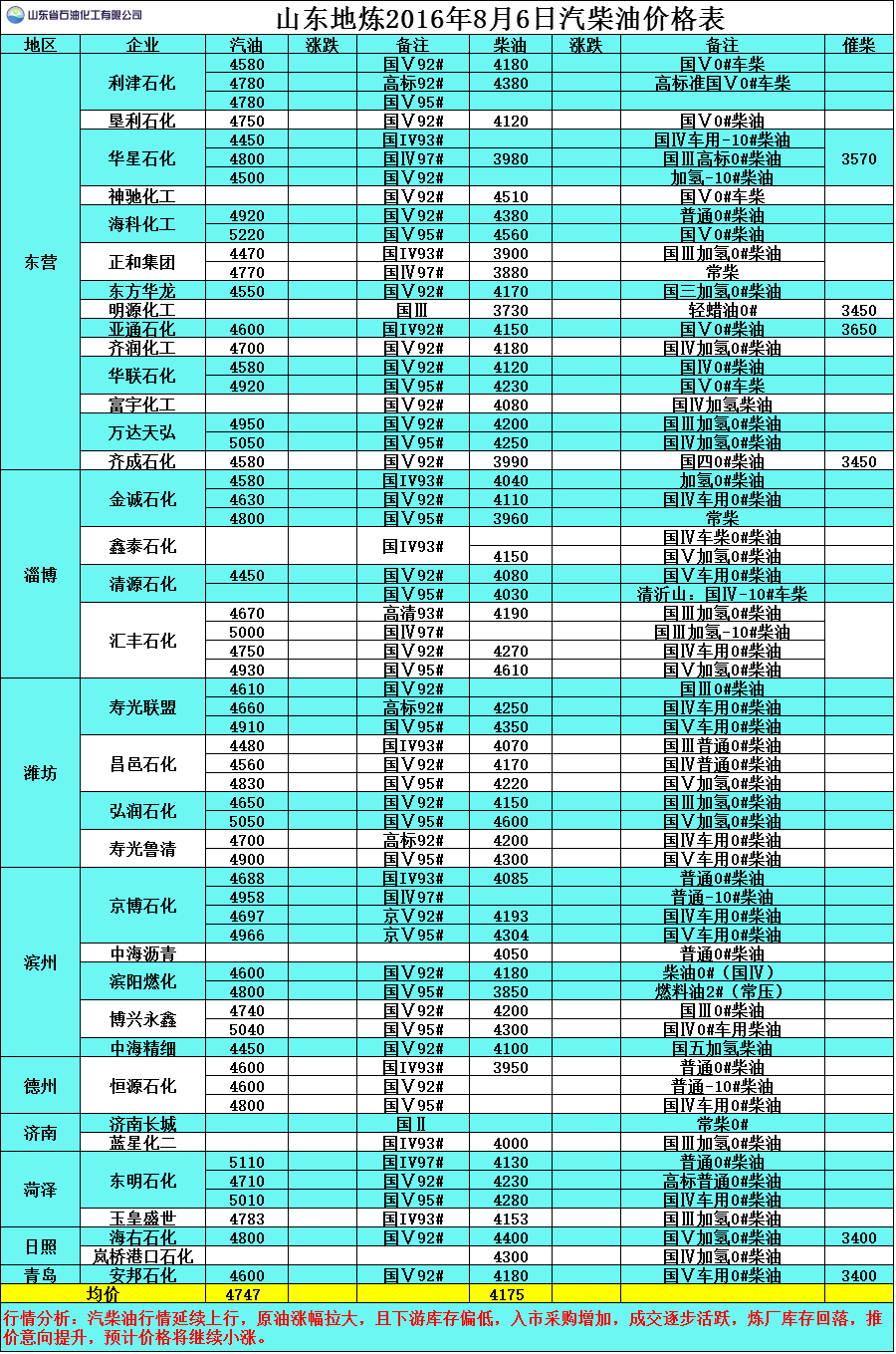 8月6日山東地?zé)捚裼蛢r(jià)格
