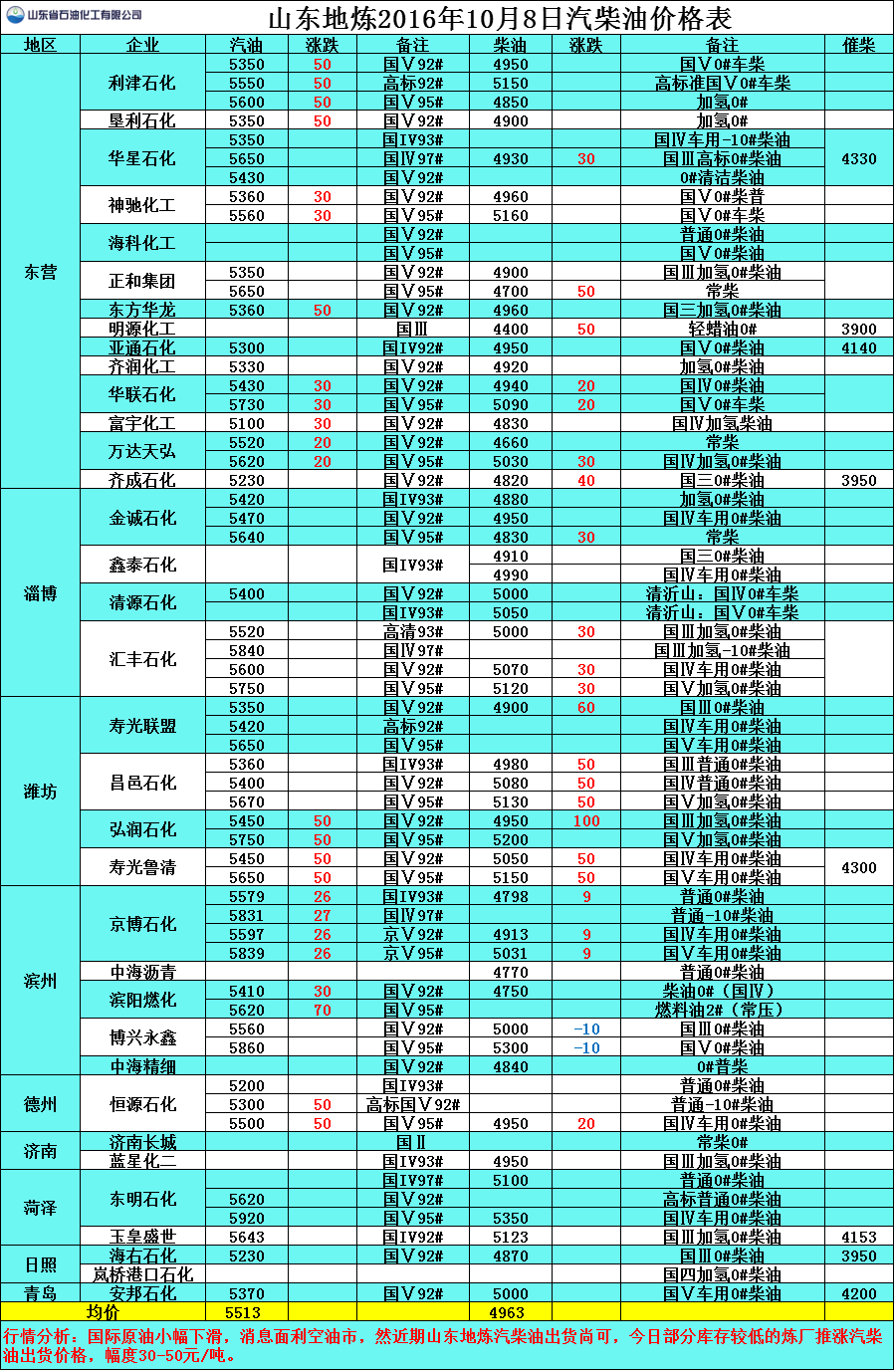 10月8日山東地煉汽柴油價格