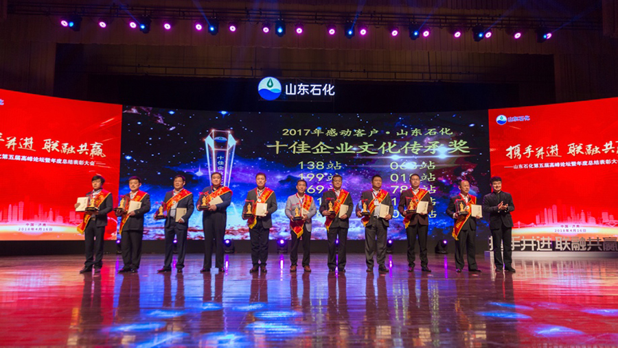 在會(huì)議現(xiàn)場,李新江總經(jīng)理宣讀了2017年度的表彰決定,并評選出2017年度感動(dòng)客戶·山東石化十佳油品銷量增長站點(diǎn)獎(jiǎng)、山東石化十佳非油品銷售站點(diǎn)、山東石化十佳營銷成果站點(diǎn)獎(jiǎng)、山東石化油品質(zhì)量管理獎(jiǎng)、山東石化十佳站點(diǎn)獎(jiǎng)、2017年度感動(dòng)山東石化· 一路同行客戶獎(jiǎng)、2017年度感動(dòng)客戶·山東石化十佳服務(wù)之星、山東石化十佳站經(jīng)理獎(jiǎng)、山東石化十佳推介獎(jiǎng)、山東石化公益人物獎(jiǎng)等獎(jiǎng)項(xiàng),相關(guān)領(lǐng)導(dǎo)予以頒獎(jiǎng)。