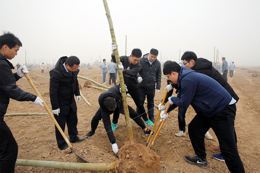 山東石化黨支部組織黨員干部開展義務(wù)植樹活動