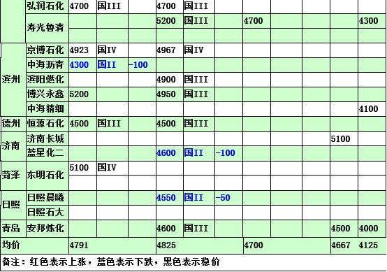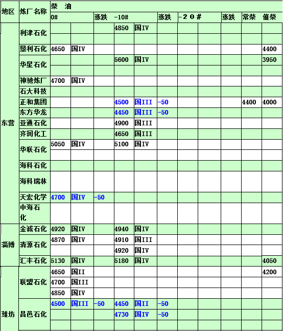 2015年3月17日山東地煉柴油價格