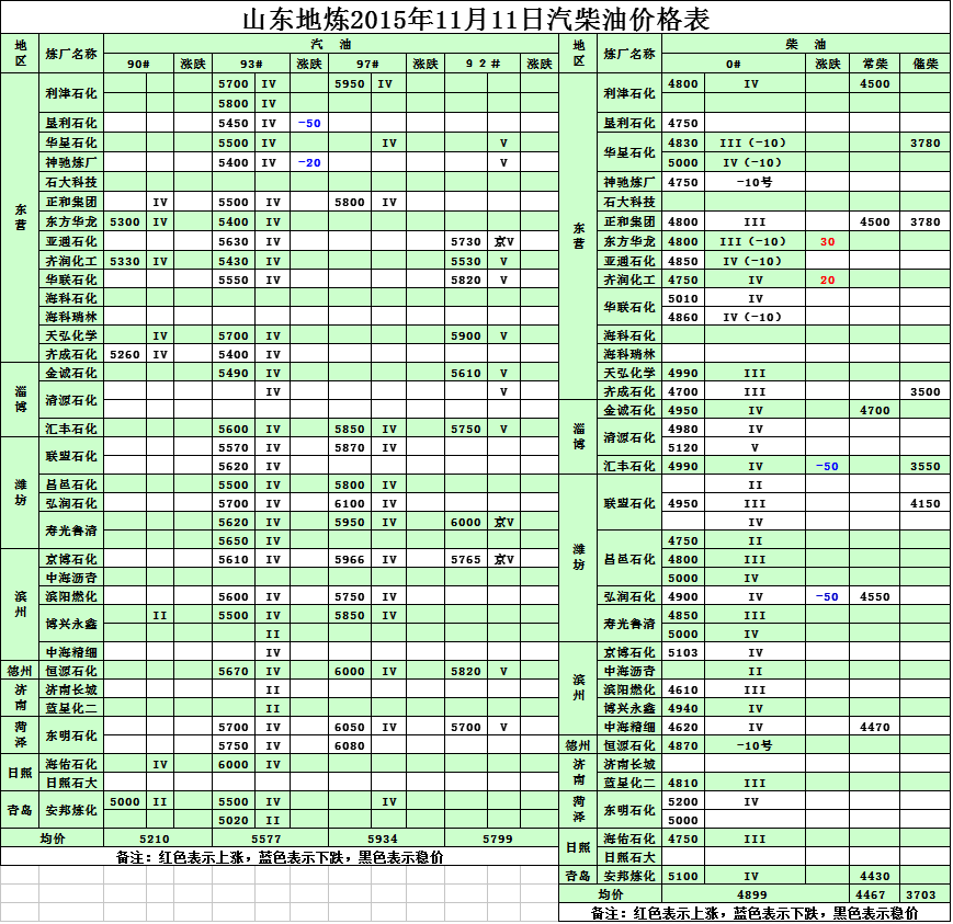 2015年11月11日山東地?zé)捚裼蛢r(jià)格表
