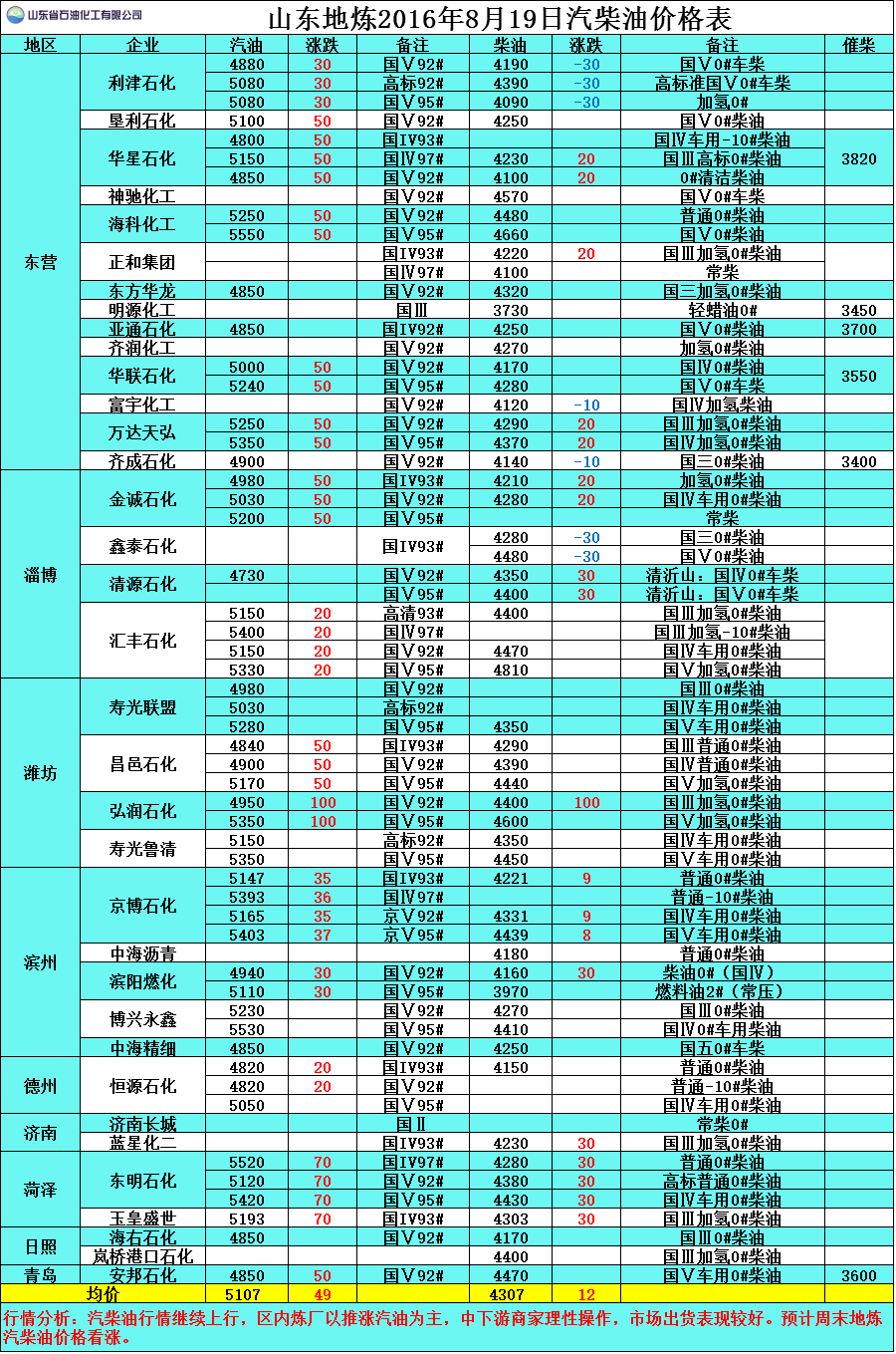 行情分析:汽柴油行情繼續(xù)上行,區(qū)內(nèi)煉廠以推漲汽油為主,中下游商家理性操作,市場出貨表現(xiàn)較好。預計周末地煉汽柴油價格看漲。